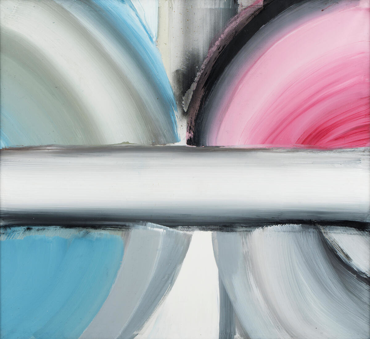 In 1956, in Paris, Ed Clark first began spreading his canvases on the floor and pushing piles of paint across the surfaces with large, utilitarian brooms. This process became his signature method, which he favored for its magnitude of gesture and its speed. In Untitled (Paris Series), one can easily imagine the broom swiftly interrupting the blue and pink swirls in one oversized stroke. The forms seem to blur, moving so quickly as to shift out of focus.